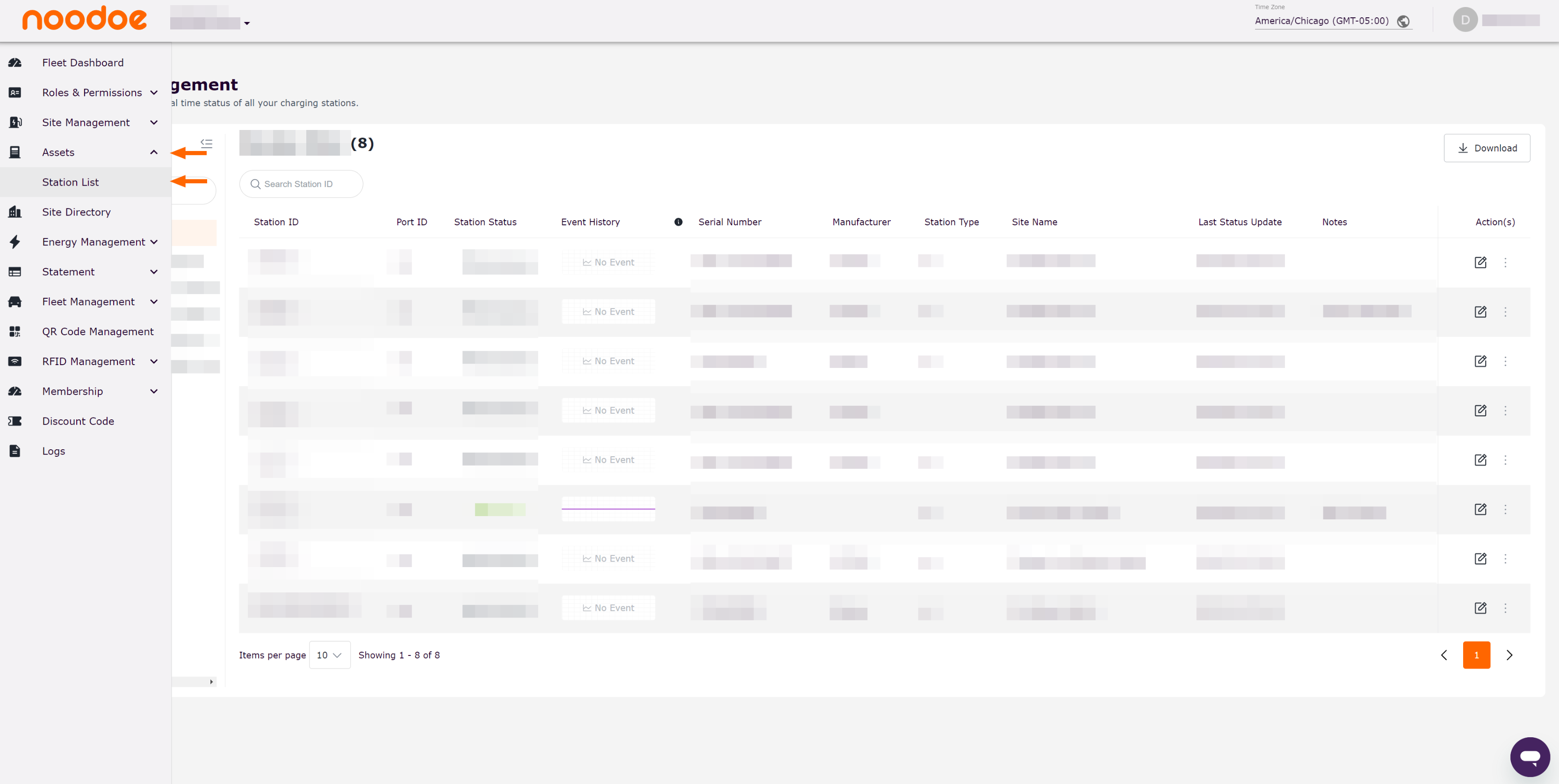 To begin the process of moving a station, you will need to login to your EV OS account, expand the options pane on the left hand side as well as the Assets drop down menu, and then select Station List as seen below: