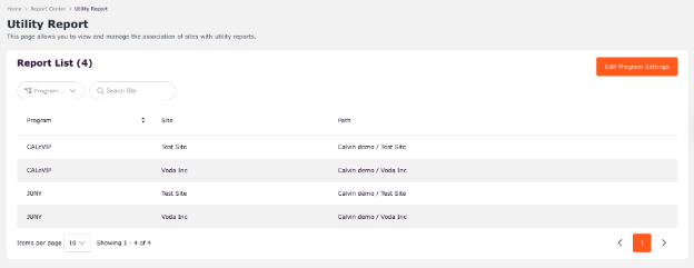 Once a site is successfully associated with a program, it will appear in the Report List in Utility Report.