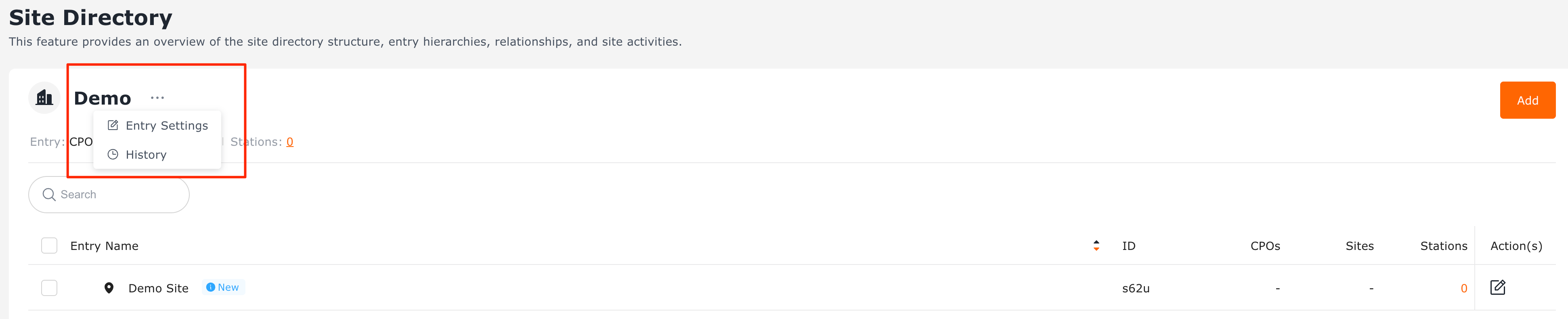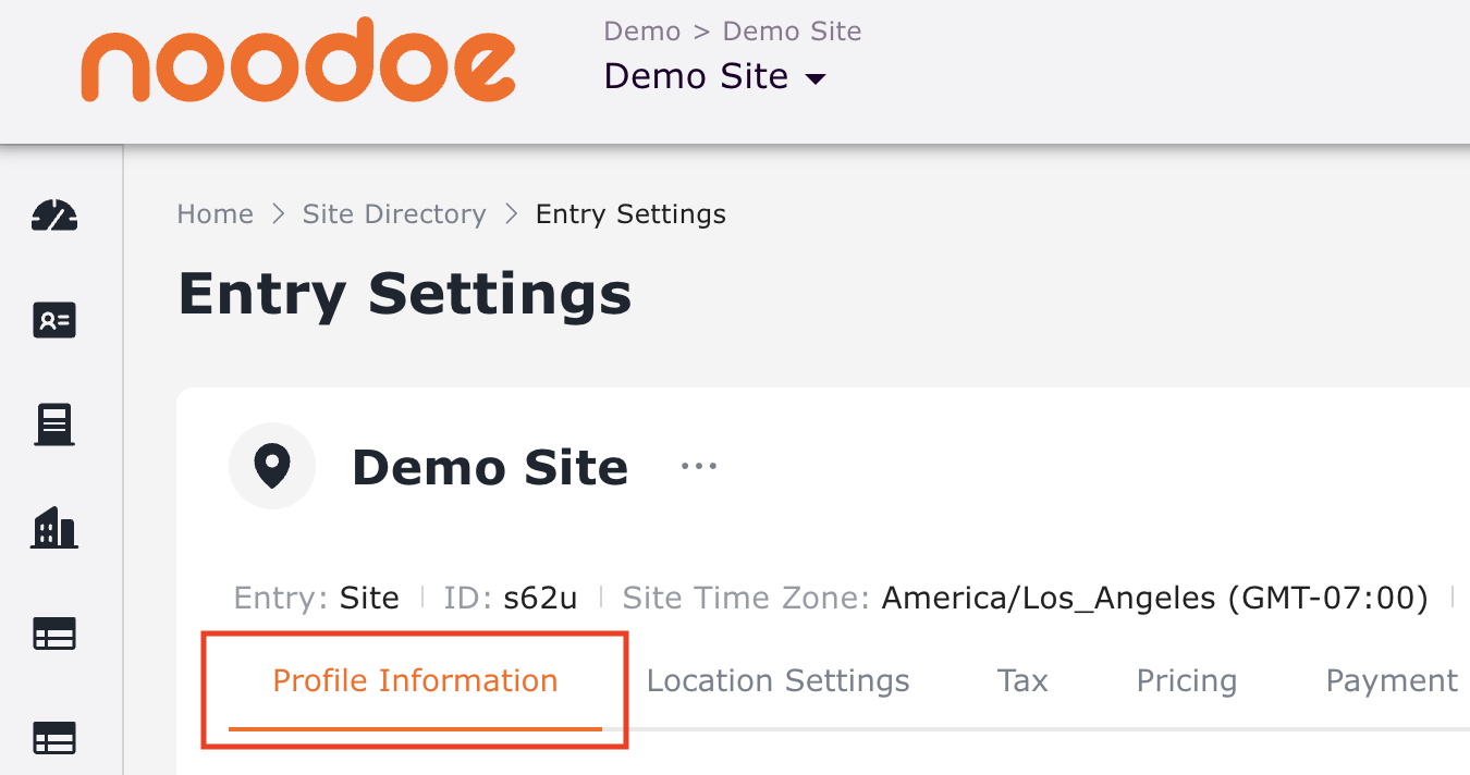 2. Click Entry Settings on the current entry, or select the site and click the Entry Settings