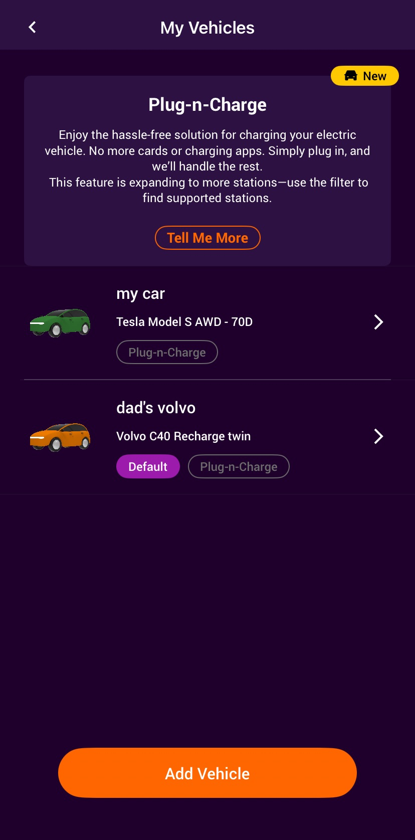 2. Click "Add Vehicle" and follow the instructions to add your vehicle.